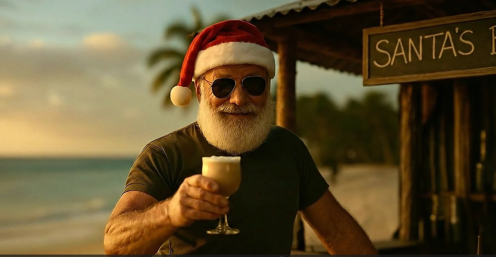 • Load and play video in Gallery viewer, santa drinking coffee on beach